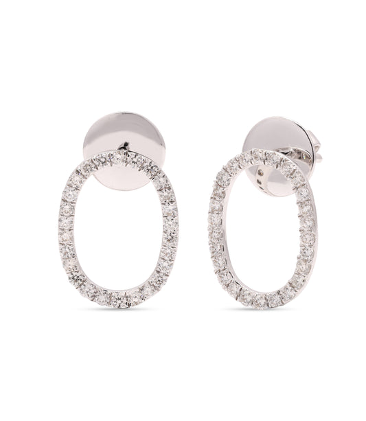 Oval Tennis White Gold Diamond Earrings