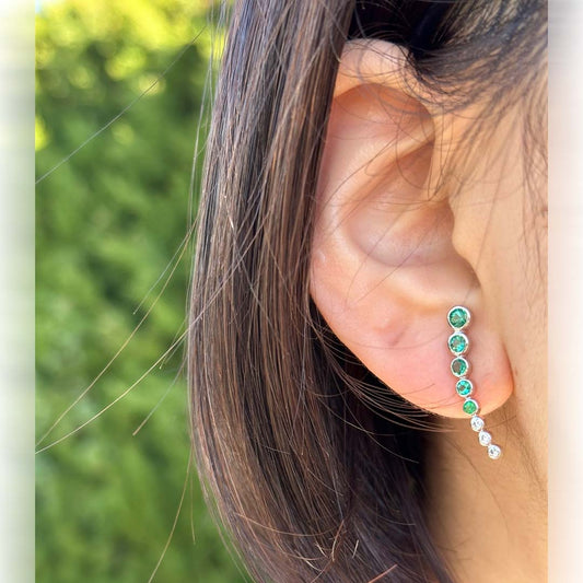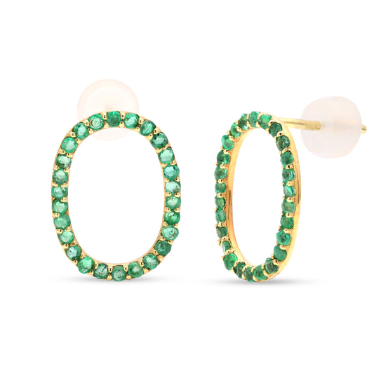 Oval Tennis Gold Emerald Earrings