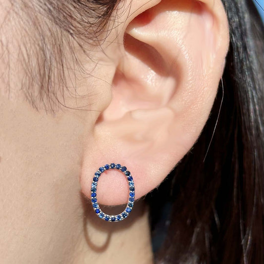Oval Tennis Gold Blue Sapphire Earrings