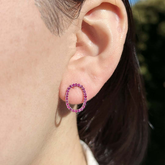 Oval Tennis Gold Pink Sapphire Earrings