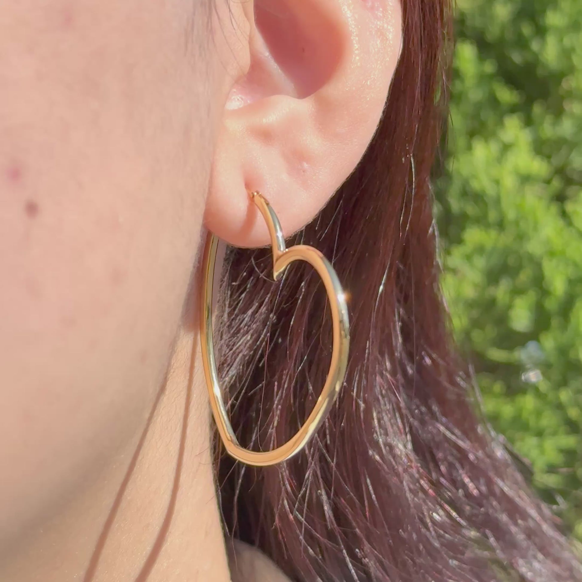 These grande heart hoop earrings are a bold and romantic expression of elegance, crafted from luxurious 18k yellow gold. Shaped into oversized hearts with smooth, fluid curves, they combine playful charm with high-end sophistication. The polished surface reflects light beautifully, enhancing the natural warmth and glow of the gold for a look that is both eye-catching and timeless.